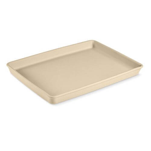 This pan is just the right size for packaged brownie mixes and ooey-gooey bar cookie mixes, biscuits, sheet pan dinners, chicken, frozen foods, crispy pizza, or reheating leftovers that are just as good or better than day one. Because the unglazed cooking surface draws moisture away, everything cooks consistently and turns out light and crispy.